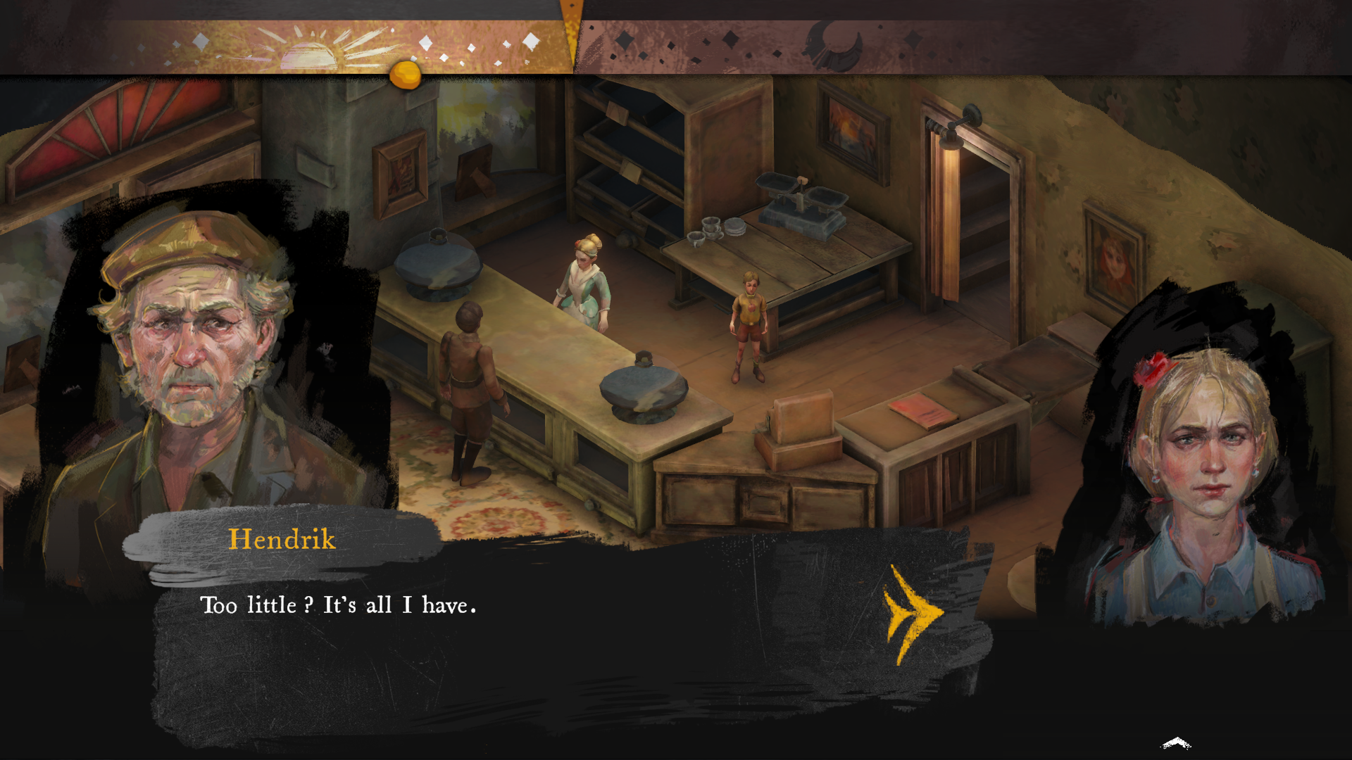 In this narrative game based on a real story, you'll run the local bakery in a Belgian village during the German occupation of World War II. Manage your resources in the harsh conditions of war while navigating complex dialogue with your customers. In Hidden Heroes, you will have to choose between self-preservation and helping others.
